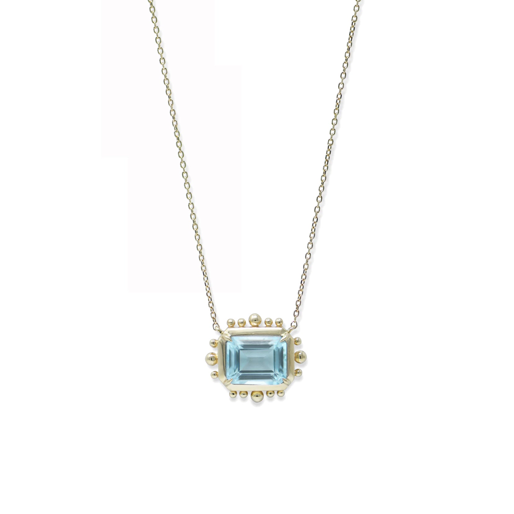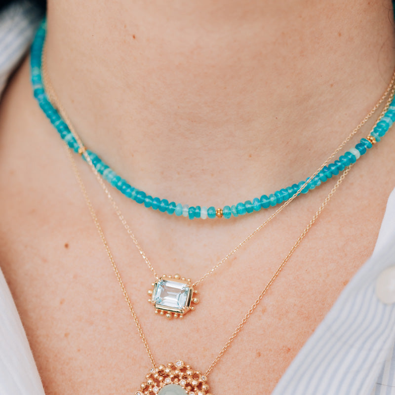 Blue Topaz Dew Drop Carré Marine Pendant Necklace
