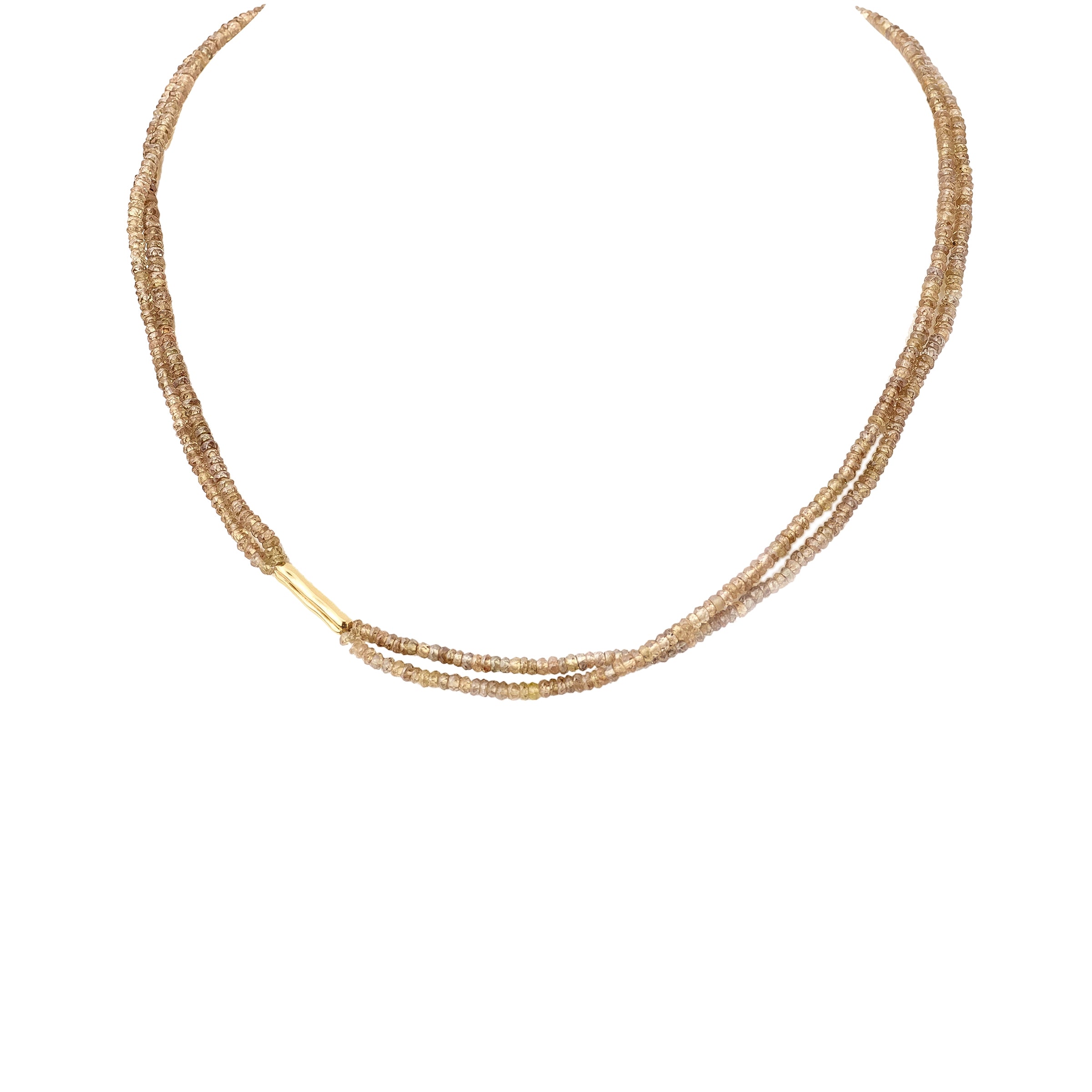 18k yellow gold 'Wrap' 16-18'' strung double-strand champagne garnet bead with gold organic log bead and tied extension.