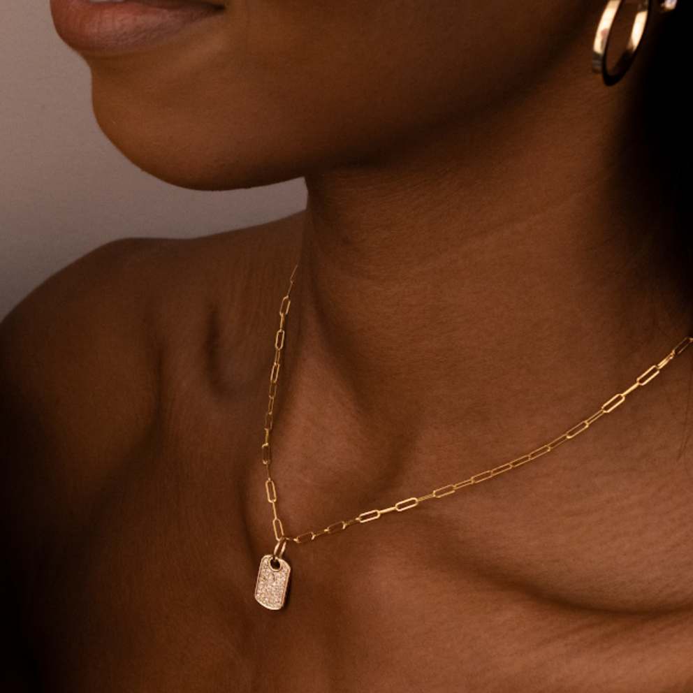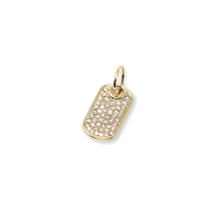 Diamond Pave and 14k Gold Dog Tag Charm.