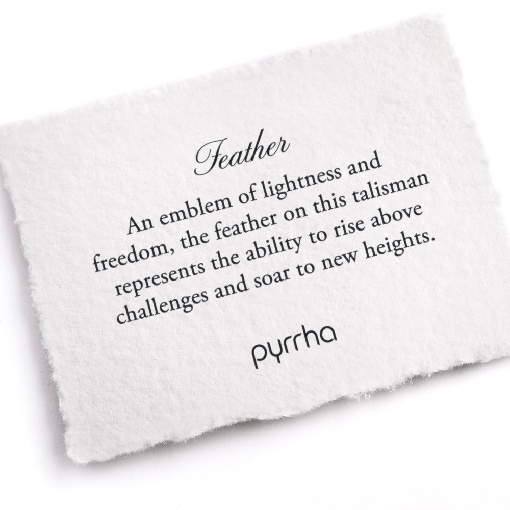 An emblem of lightness and freedom, the feather on this talisman represents the ability to rise above challenges and soar to new heights.