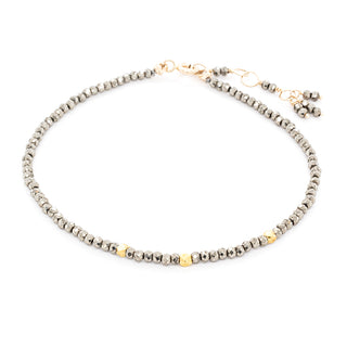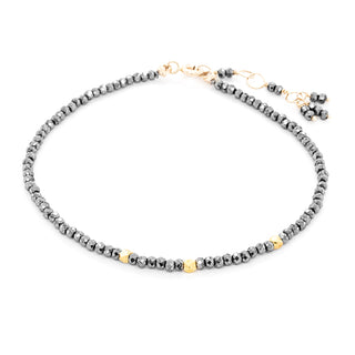 14k single wrap bracelet with three 18k yellow gold hex beads.