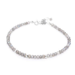 Bold Sparkling gemstone beads are perfectly complemented by 3 of our hand carved hammer faceted beads.