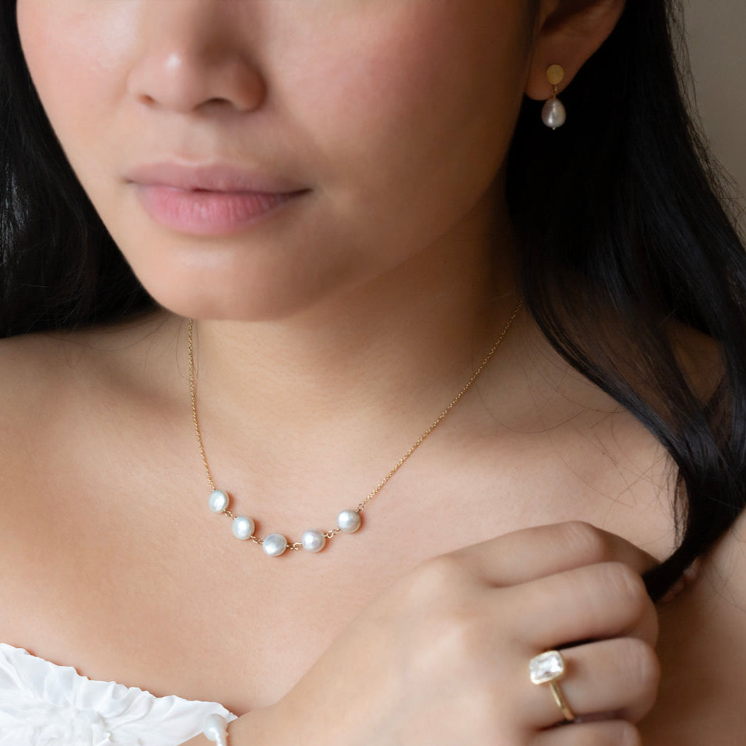 Sweet and simple, 5 hand tied coin pearl necklace