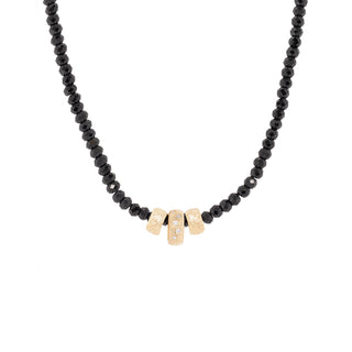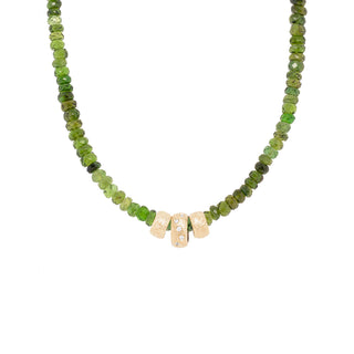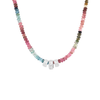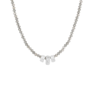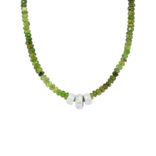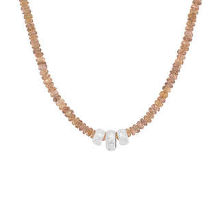 Bold Sparkling gemstone beads are punctuated by our hand carved boulder textured beads which naturally settle in the center front.