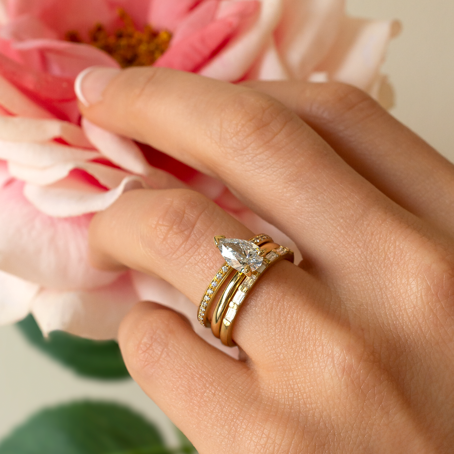 Classic and unique, we love this prong and cap setting for a brilliant pear-shaped lab-grown diamond.