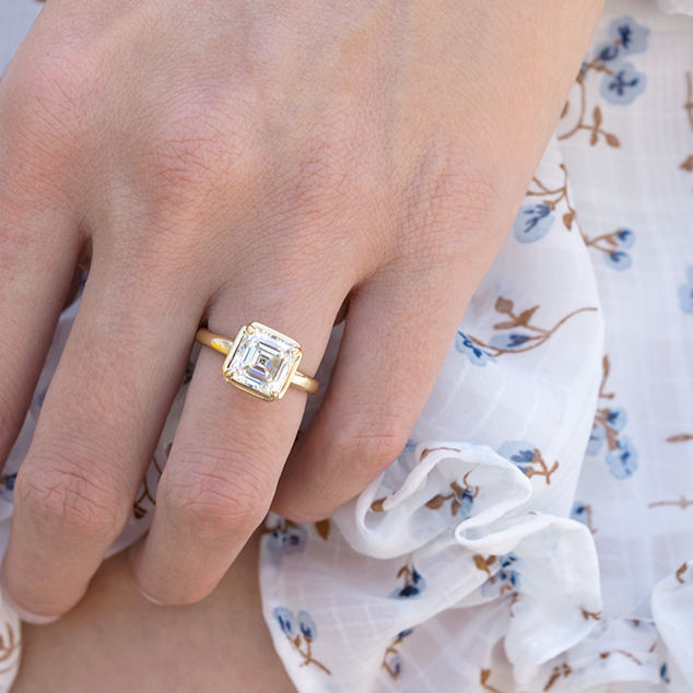 The perfect combination of art deco and modern style, the unique bezel setting is adorned with delicate prongs, ensuring all eyes are on you!